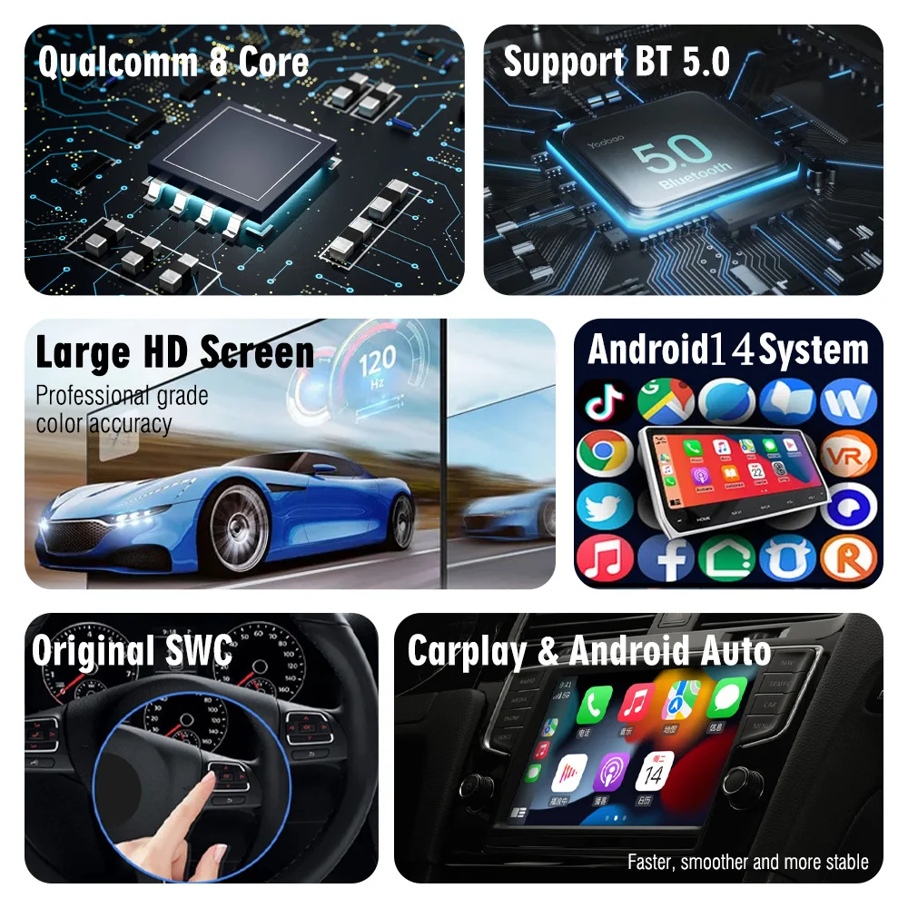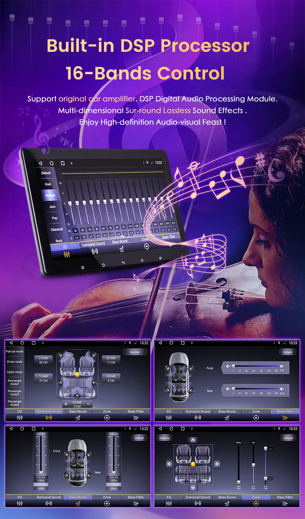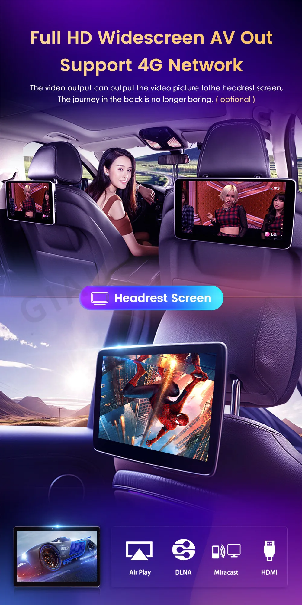 11. Supports Apple carplay/Android Auto/HDMI output/DSP