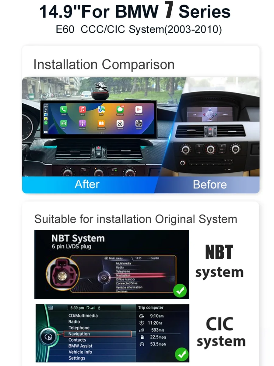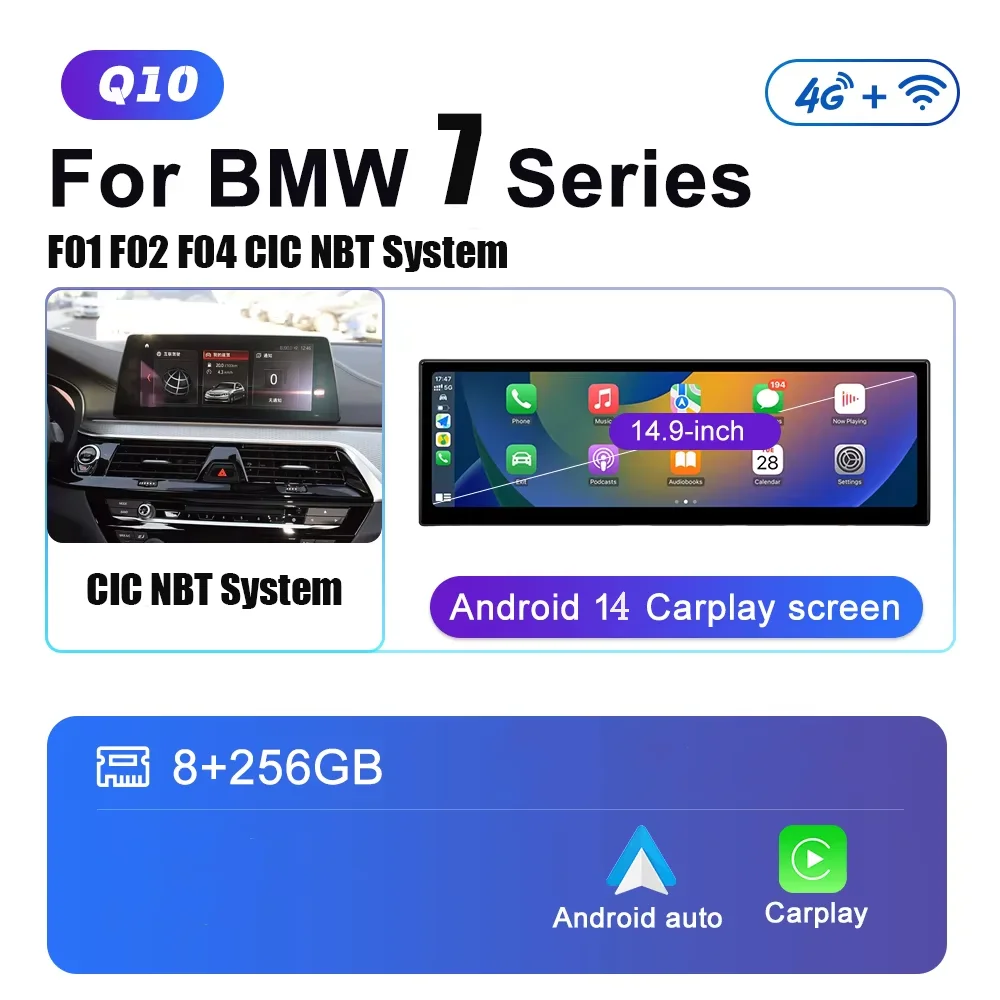 14.9 inch Car Radio For BMW 7 Series F01 2010-2015 CIC NBT Screen CarPlay Android Auto Multimedia Player Head Unit Navi Display