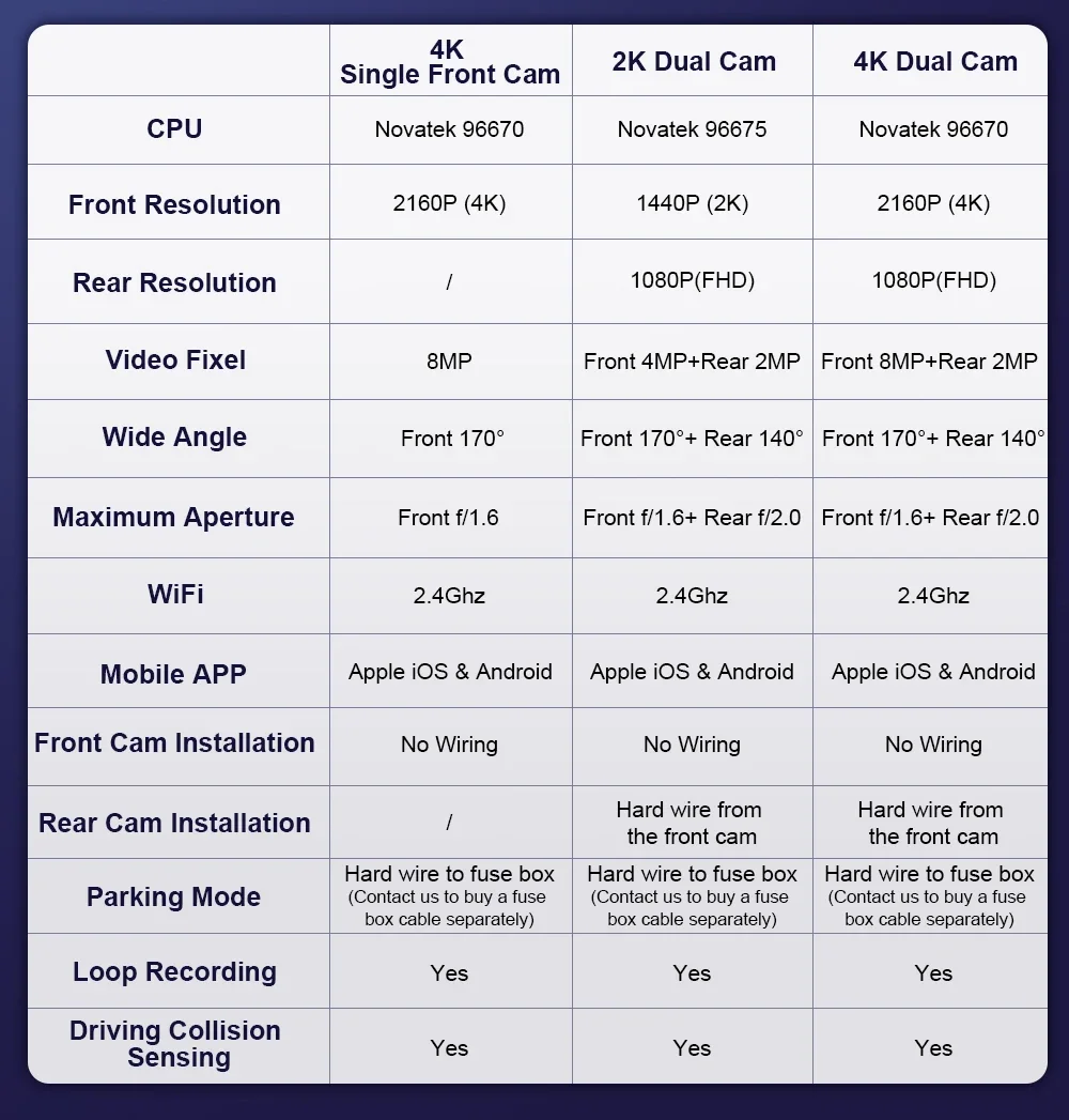 2K Front and 1080P Rear