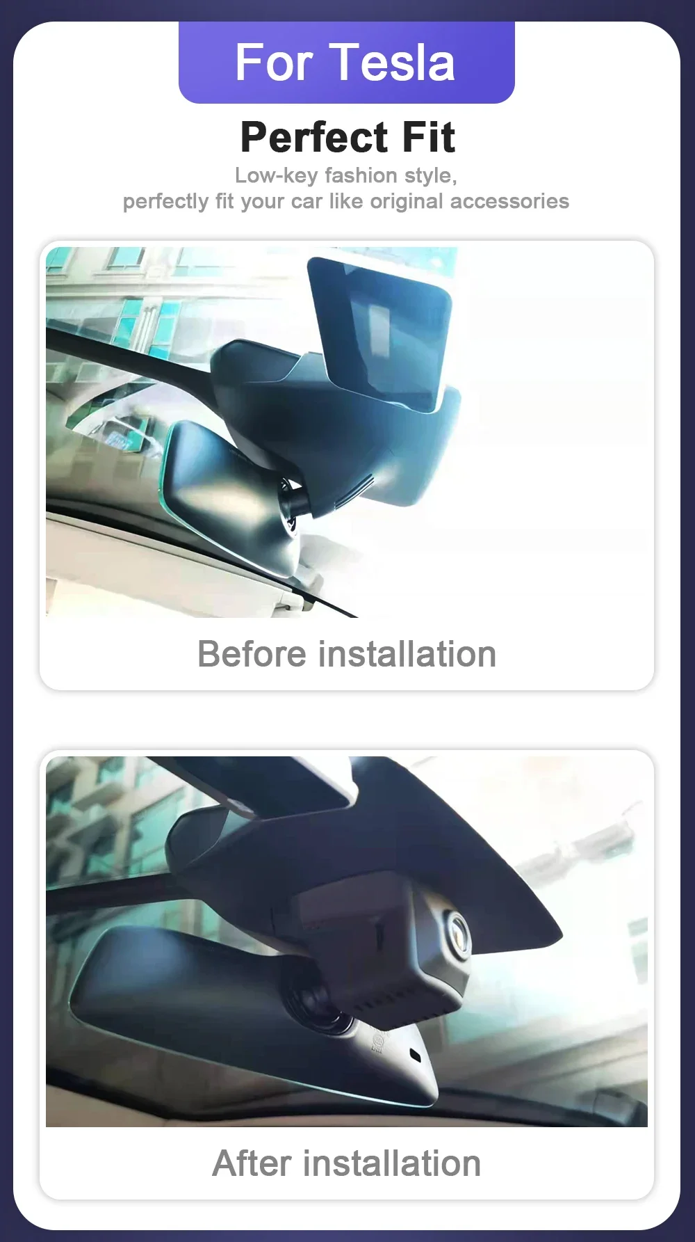 4K Dash Cam for Tesla Model 3/Y & Model S/X AP 2.0 – Wireless Car DVR with Night Vision, OEM Style, APP Control