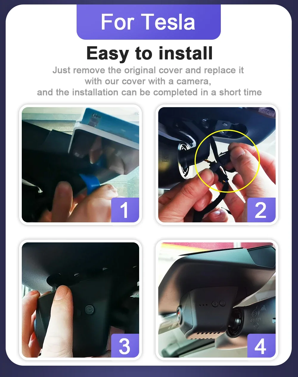 Just remove the original back cover and replace it with FITCAMX dash cam and the installation of it is a breeze.