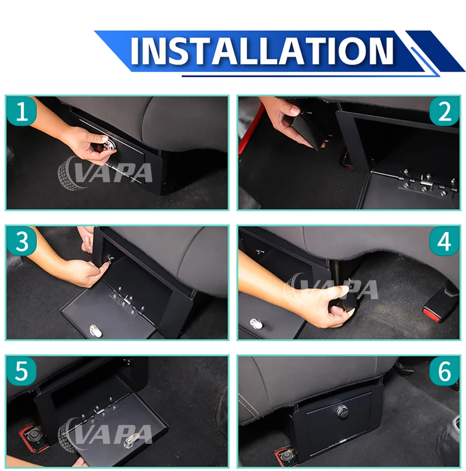 【Easy to install】—Simple installation with adhesive tape, has no destruction to the original seat. Quickly and effortless. you just need is the original screw position to secure the safe.