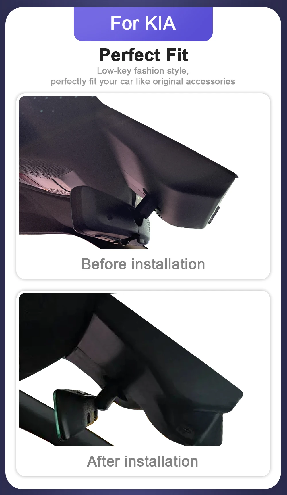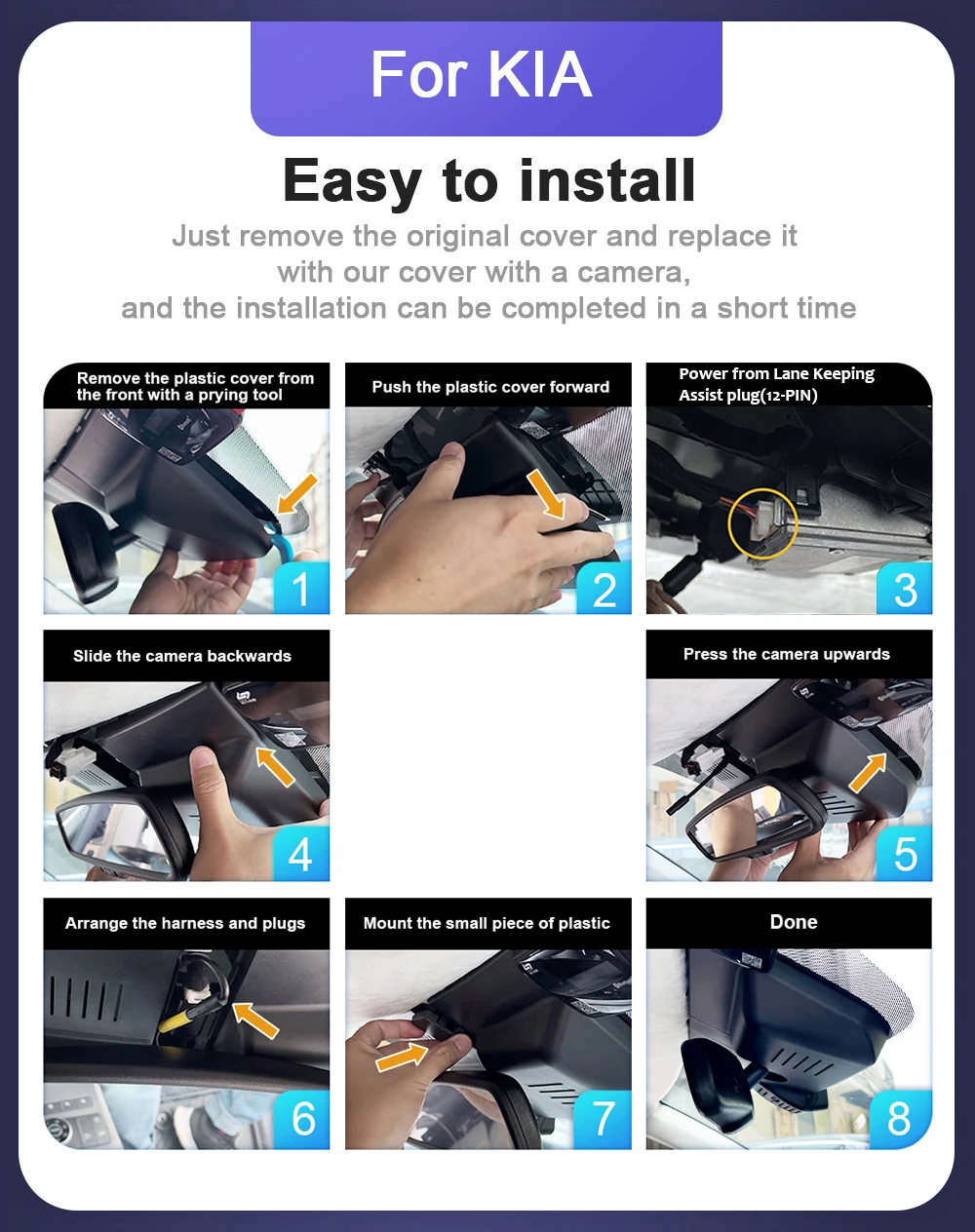 Just remove the original back cover and replace it with our dashcam and it takes a short time to install.