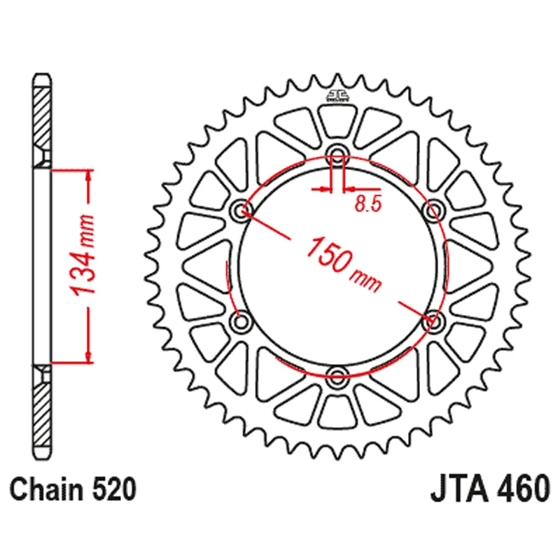 JTA460 50T Motorcycle Transmission Sprockets adalah sprocket roda belakang berkualitas tinggi yang dirancang khusus untuk Kawasaki KX250 tahun 2011–2017 dan KX450F tahun 2006–2018. Dengan jumlah gigi 50T (50 teeth), sprocket ini memberikan perpindahan tenaga yang optimal, akselerasi responsif, dan daya tahan tinggi pada lintasan balap maupun off-road. Terbuat dari material premium, sprocket ini cocok sebagai pengganti part bawaan yang aus atau upgrade performa motor Anda.
