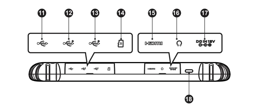 18. Lock/Power Button – long press to turn on and off the Tablet, or short press to lock the screen.